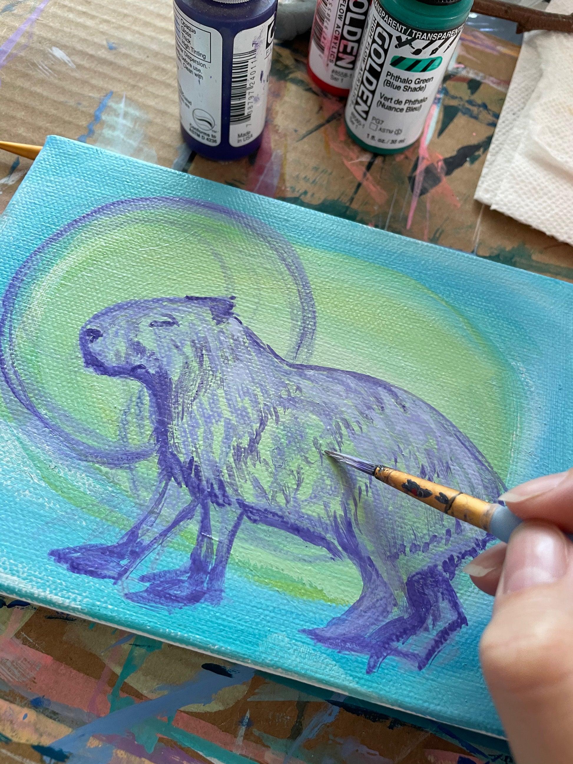 This is an original 5"x7" piece of art painted with acrylic paint on a wood board. Framing not included.