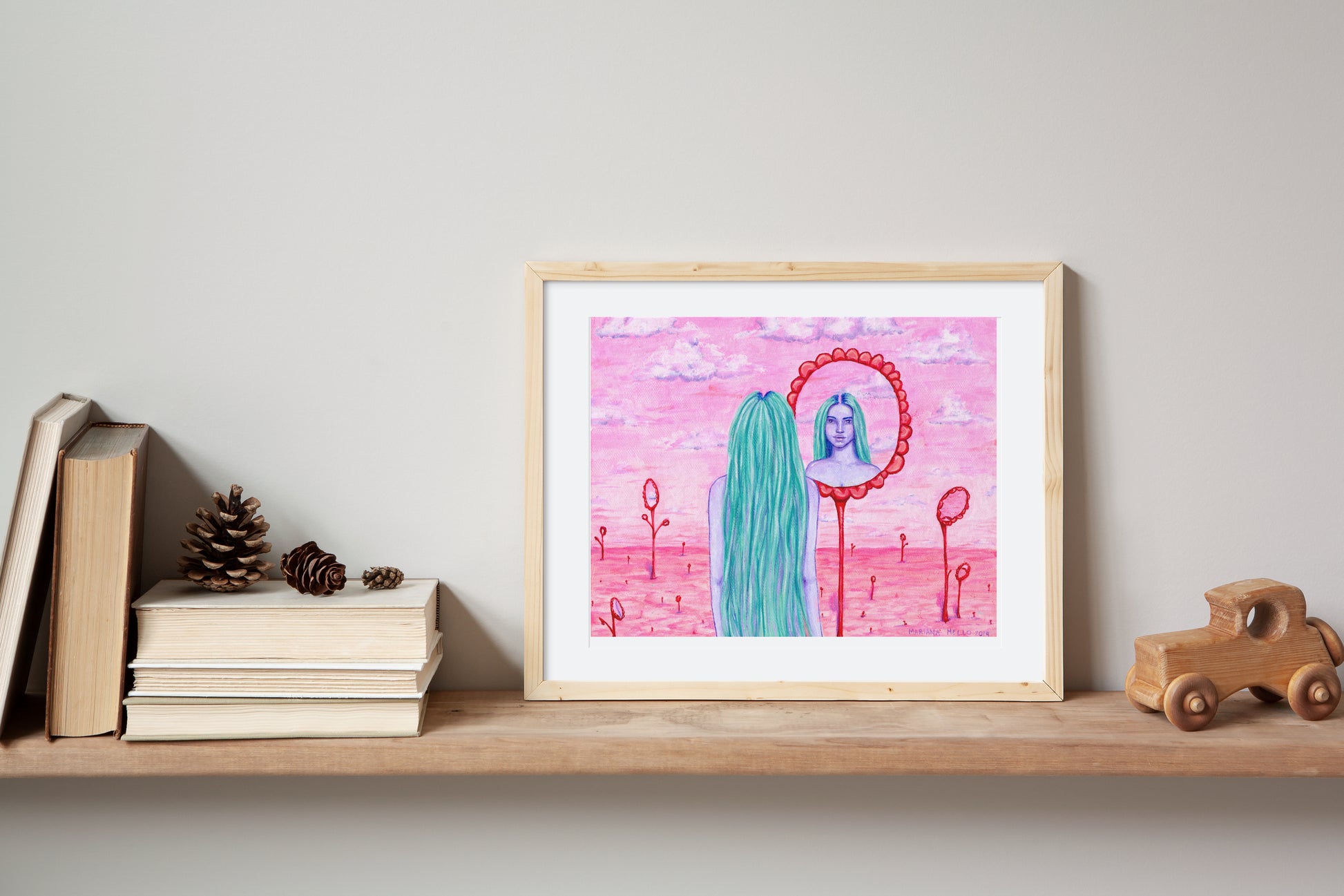 This is a fine art print of my painting "Pilgrimage,” measuring 8x10 in. The print is a museum quality print on 290gsm archival cotton rag paper.