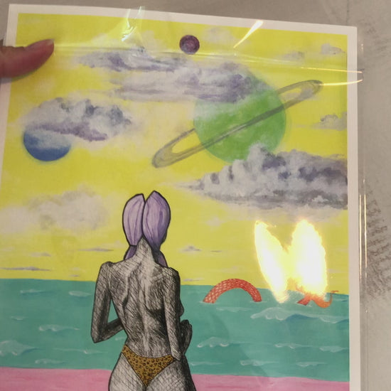 This is a fine art print of my painting "Beach Scene,” measuring 8x10 in. The print is a museum quality print on 290gsm archival cotton rag paper.
